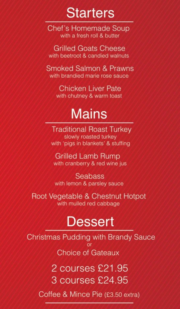 Our delicious Christmas menu runs every lunch time and evening from 1st -23rd December!